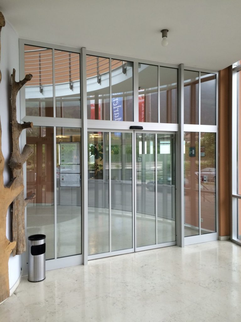 euroinfisso, produce porte automatiche con apertura scorrevole ad una o più ante, a battente o rototraslanti nel caso di carenza di spazio. Adottando speciali automatismi con elettronica ridonante e batterie tampone di emergenza le porte automatiche possono svolgere funzione di via di fuga. Sono disponibili profili minimali ad ingombro ridotto.